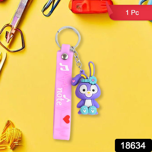 Cute Cartoon Silicone 3D Key Chain with Metal Hook & Strap (Pack of 1)