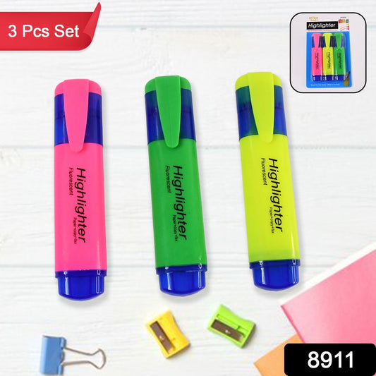 Highlighter Pen, Assorted Colours Water Based Broad Tip Writing Marker (3 Pcs Set)