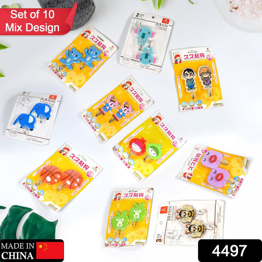 4497 Mix Design Strong Adhesive Hook Wall Hooks High Quality Premium Hook For Home , Office , & Multiuse Hook ( Set of 10 )