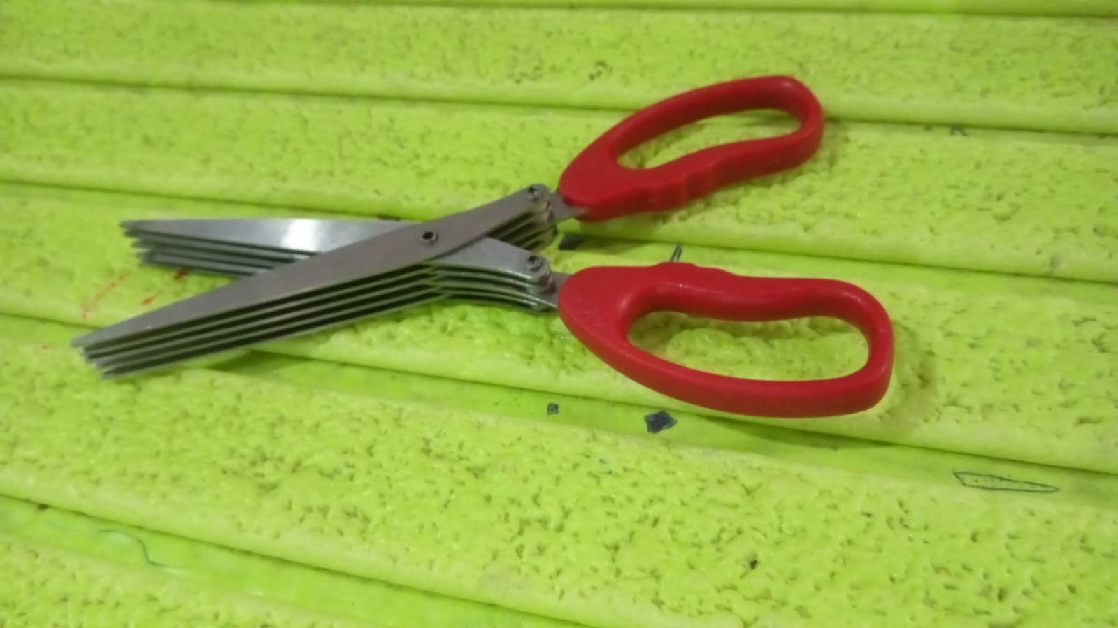 Multi-layer scissors is a good helper of kitchen shears scrawled food, can be used to cut scallions, cut noodles, kelp, cut seaweed, etc. is also a good tool of office shredding confidential. Attention: Please place where children can reach, cut the handle not near the high temperature and fire.